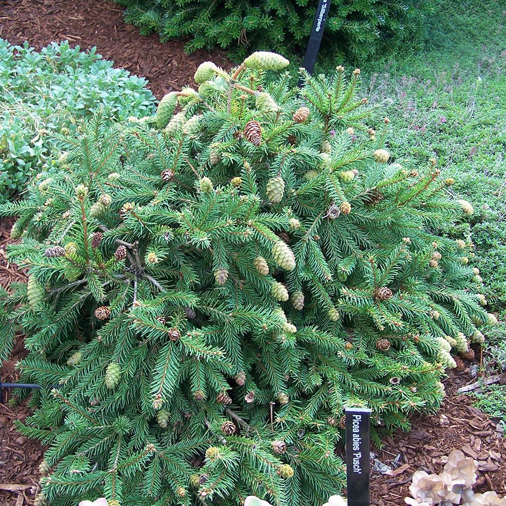 Molidul conic "Pusch" este o adevarata raritate si o atractie pentru ochi. Este incredibil de decorativ si pune accente frumoase de culoare - deoarece isi transforma conurile de flori rosii-violete in conuri de fructe maro. In general, molidul este foarte rezistent, robust si usor de ingrijit.