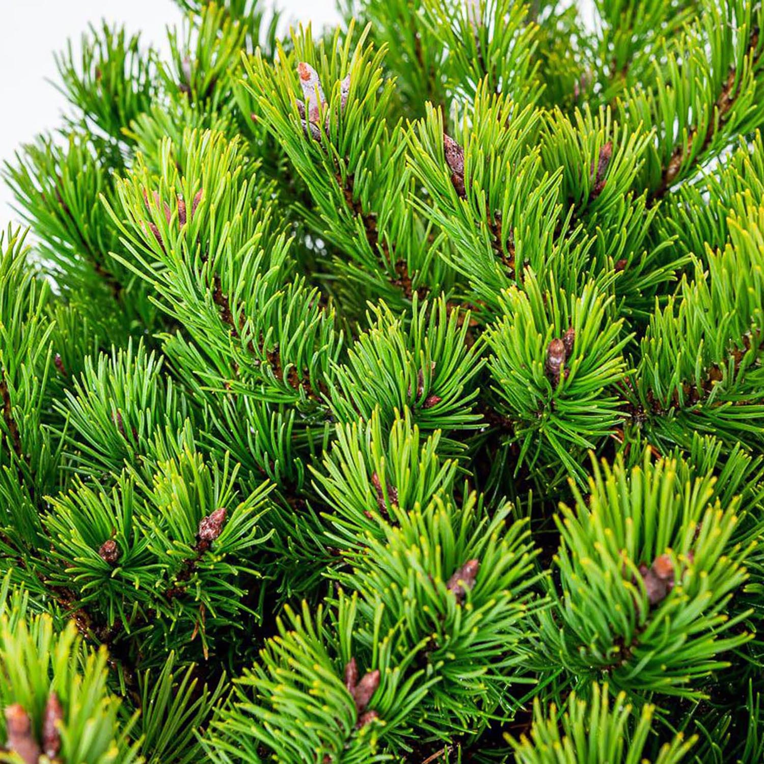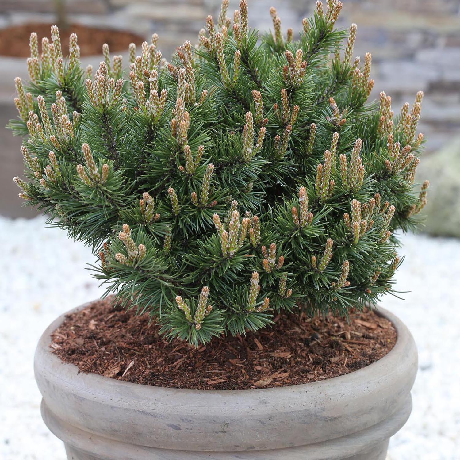 Pinul de munte "Klostergrun" provine din America de Nord si este un pin de munte pitic. Creste pe scara larga si are multi lastari. Cu o crestere anuala de 15 pana la 25 cm, atinge o inaltime de 80 pana la 100 cm. Acele acestei plante vesnic verzi au o culoare verde proaspat.