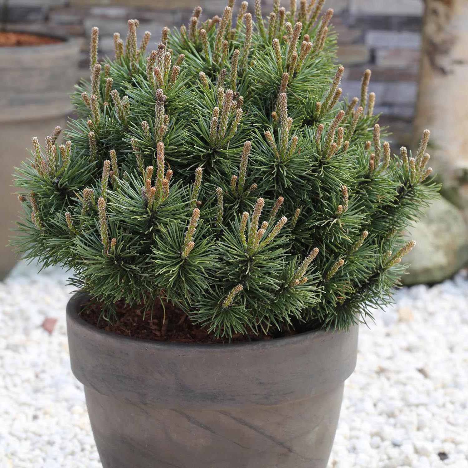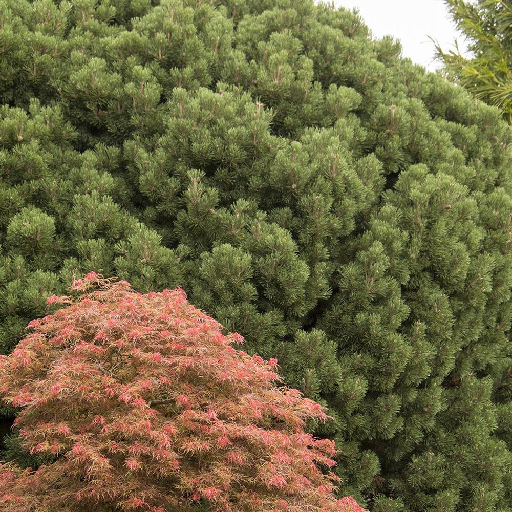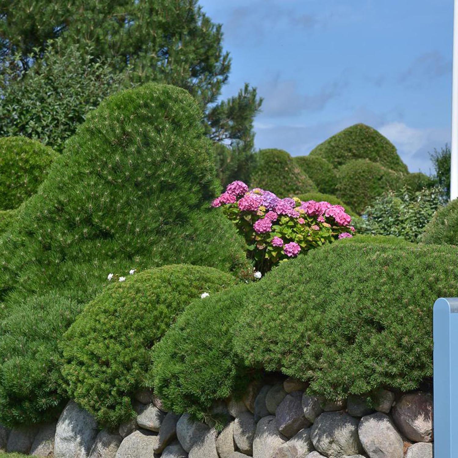 Pinul de munte mops aduce forma, abundenta si culoare in orice locatie pe tot parcursul anului! Aceasta planta lemnoasa mica nu isi poarta numele din intamplare, deoarece creste in mod pitoresc sferic, dens si stufos. In plus, acest soi de pin de munte impresioneaza prin natura sa extrem de robusta si toleranta la conditiile locale.