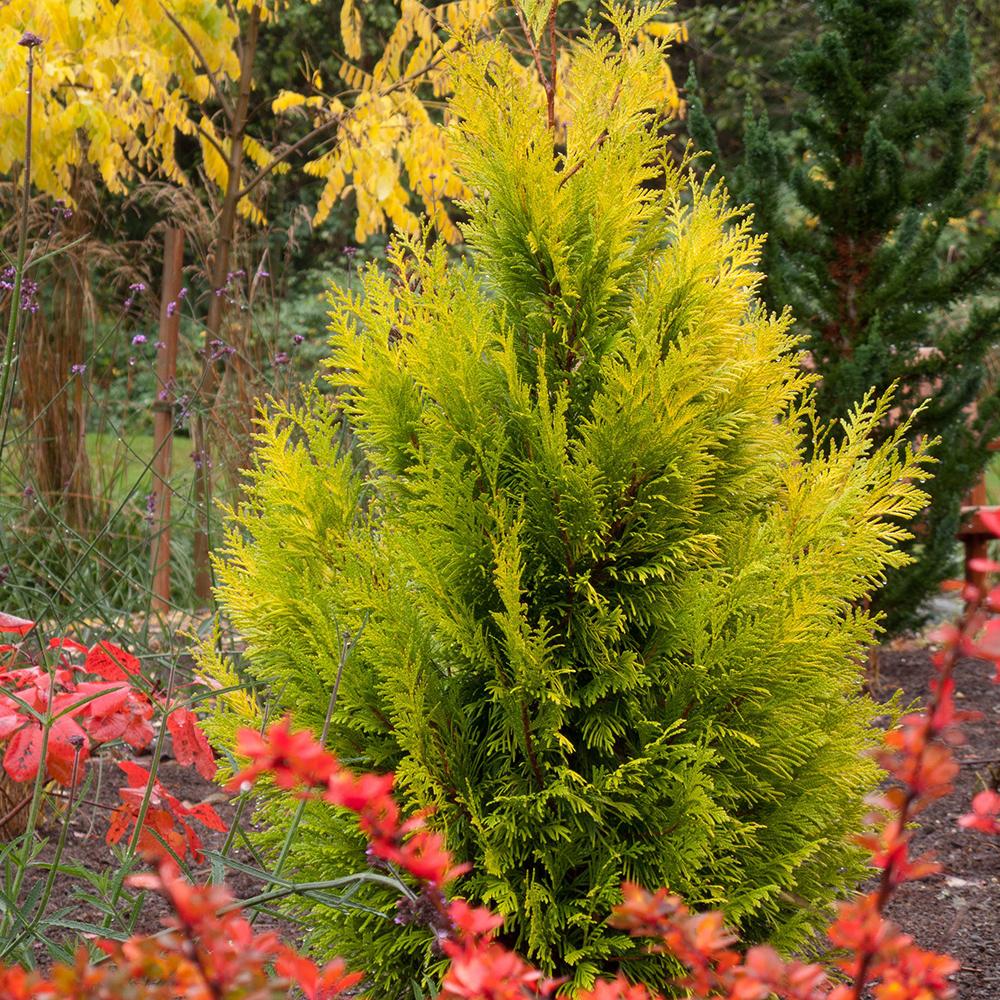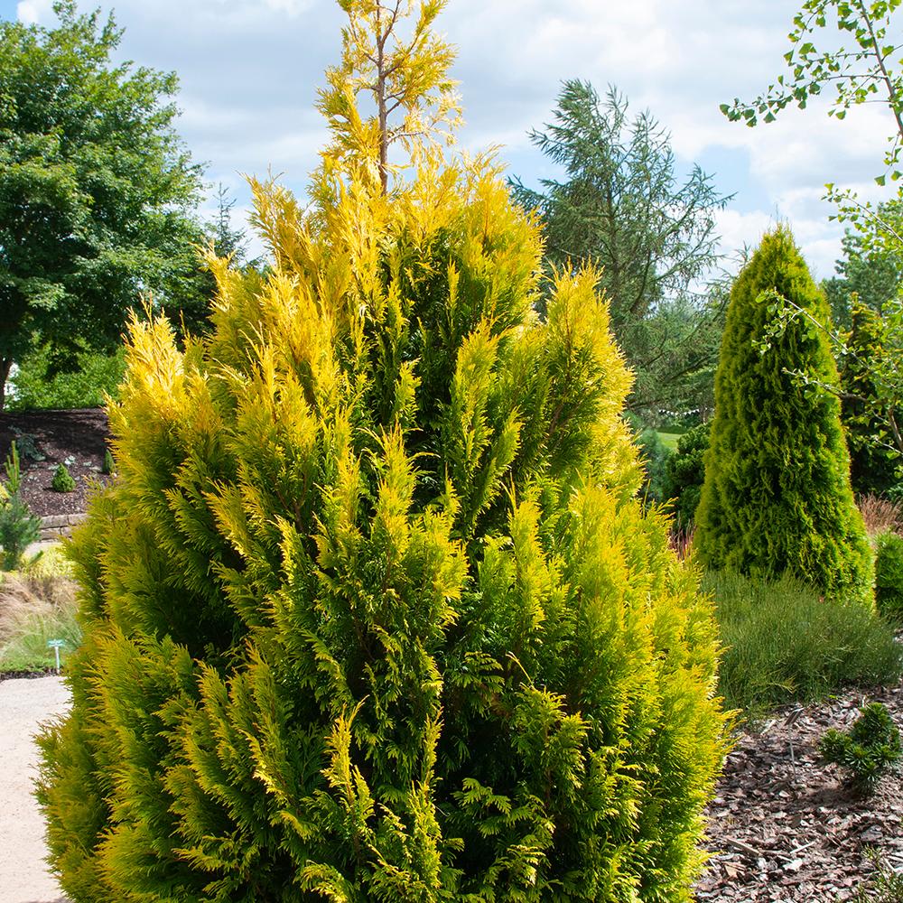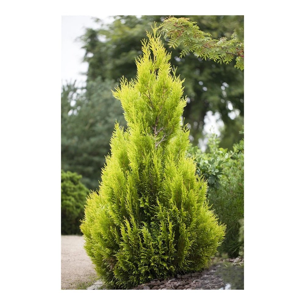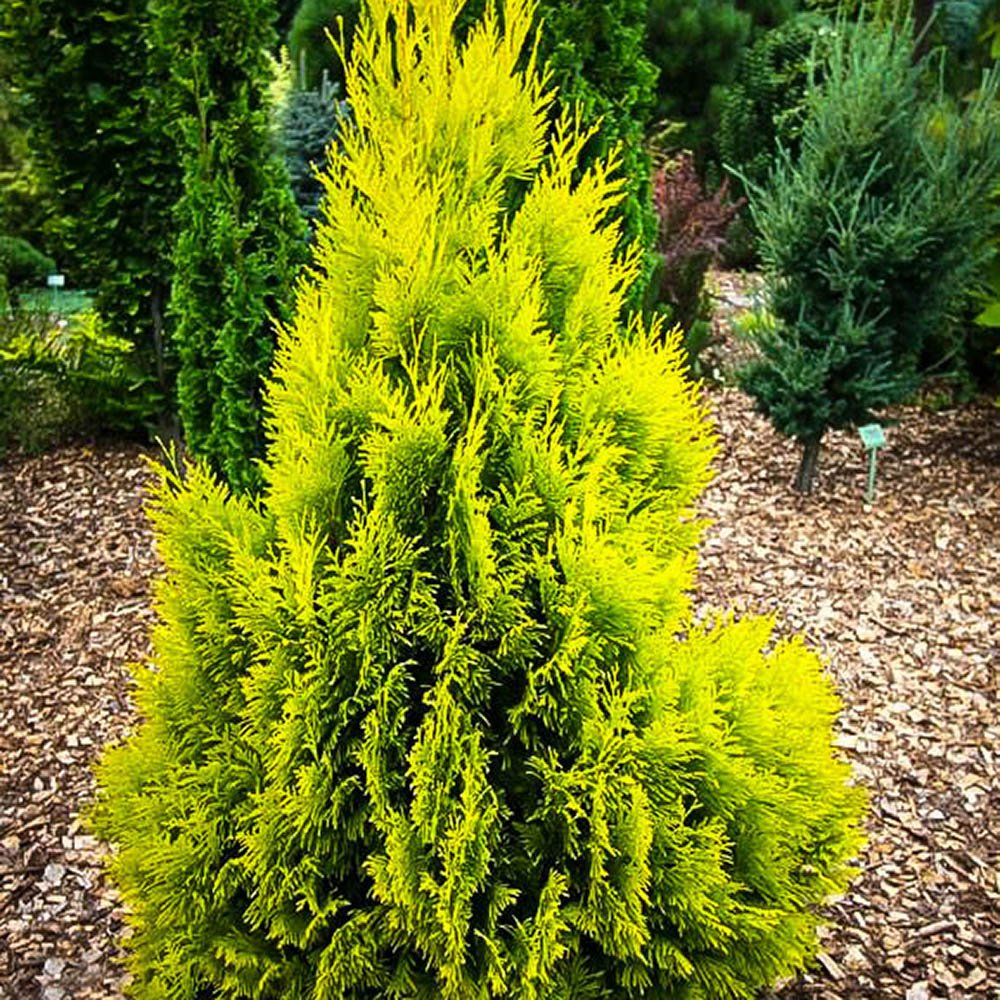 Thuja auriu '4Ever Goldy' este o varietate de tuia occidentalis, cunoscuta pentru frunzele sale aurii stralucitoare care se pastreaza pe tot parcursul anului. Este o planta vesnic verde, care aduce o nota de culoare in gradina chiar si in timpul iernii, cand majoritatea plantelor isi pierd culoarea. Prefera soare plin sau semiumbra si un sol bine drenat, dar umed.