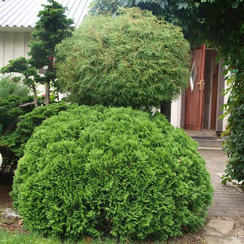 Tuia sferica pitica (Thuja occidentalis Danica) este un conifer care creste pana la 90 cm inaltime si are o forma pitica sferica plata, compact inchisa, cu ace fine si crengi verticale.